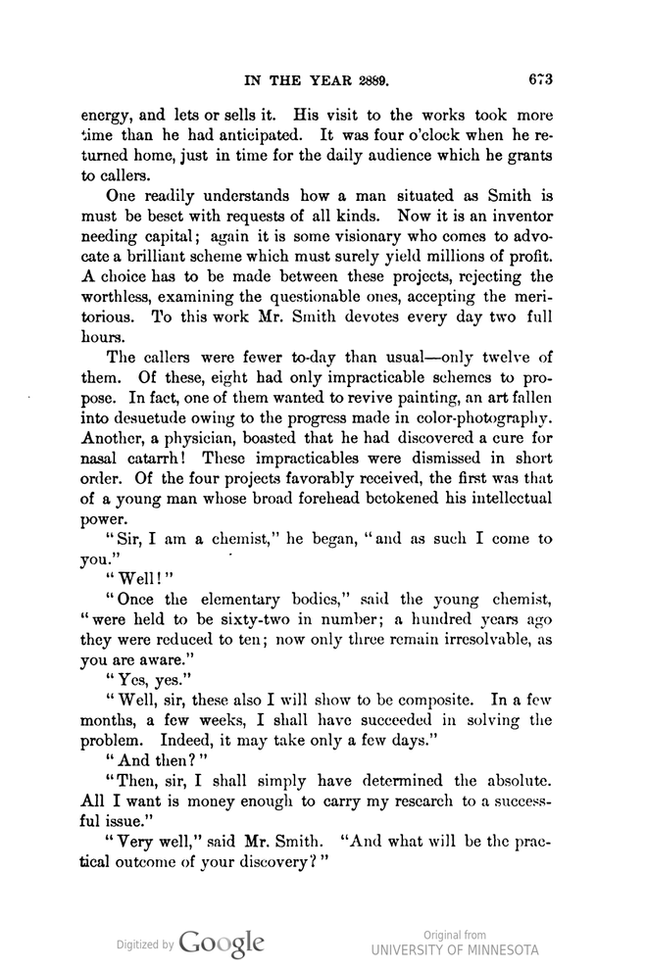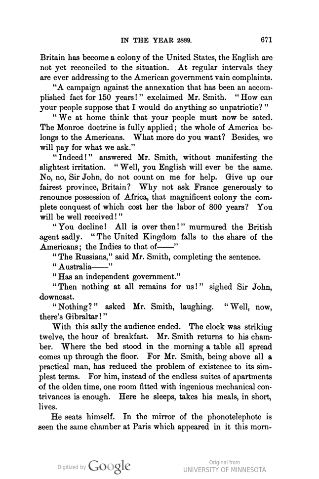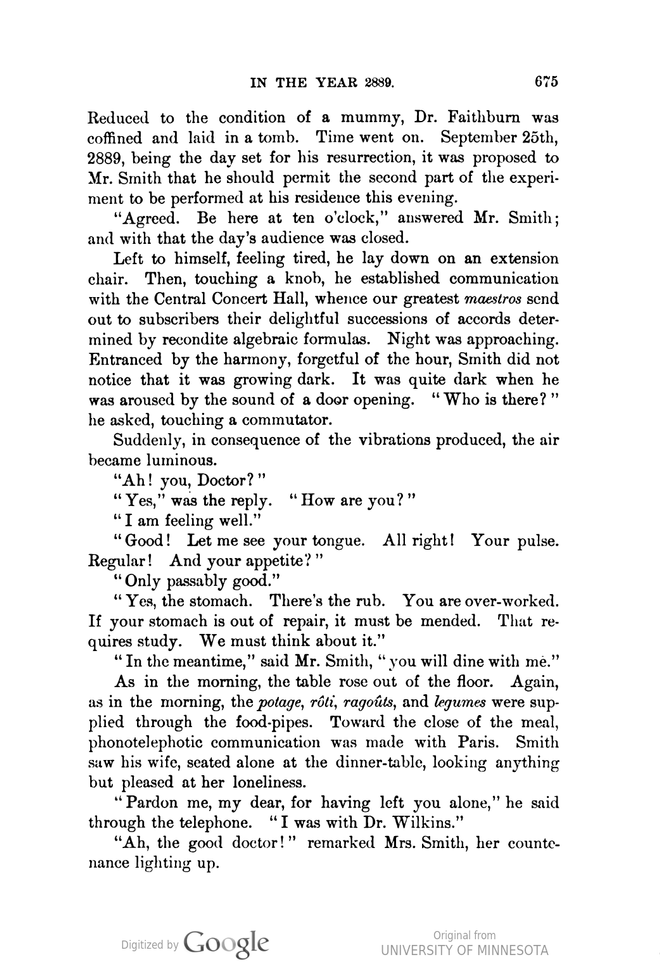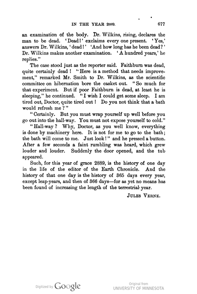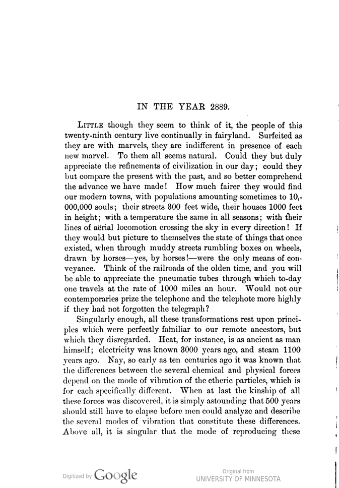 Voir la notice sur 'La journée d'un journaliste américain en 2890", version française de cette nouvelle de Jules Verne initialement parue aux Etats-Unis.